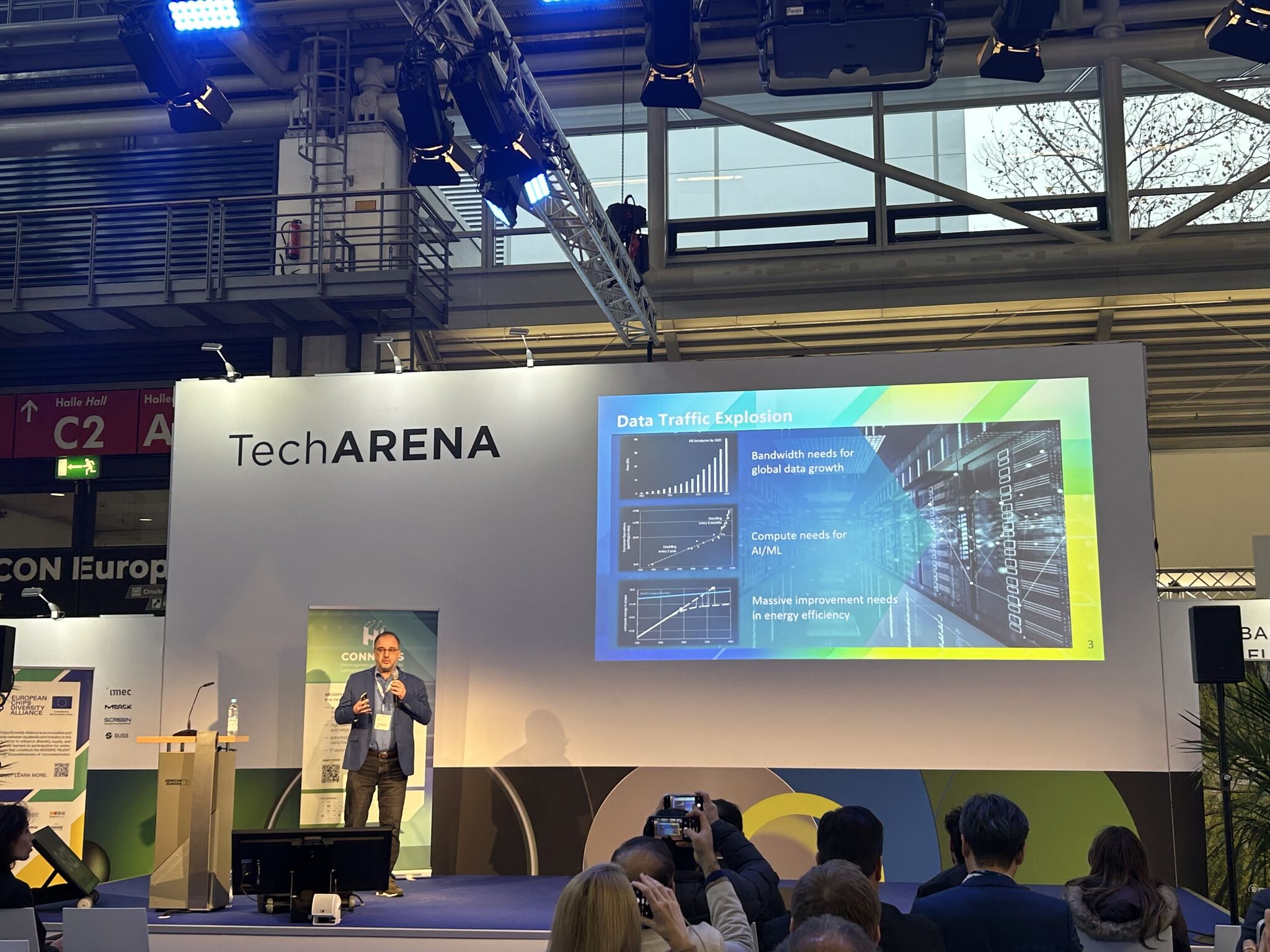 Dimitrios Velenis (imec) presented on the heterogeneous integration of co-packaged optics and its importance in navigating the growing complexities of AI-driven systems.